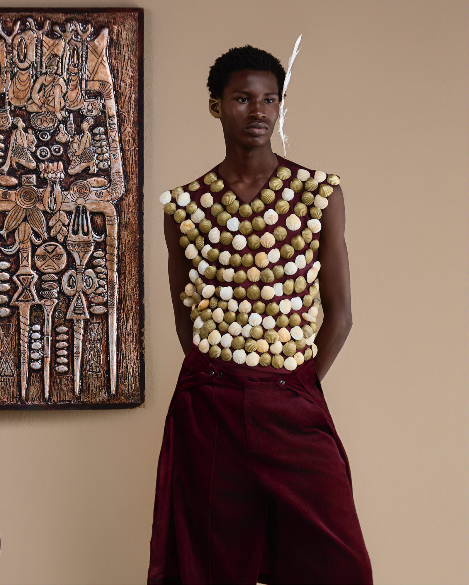 Inspired by the strength and symbolism of ekike ndi ichie, this look embodies authority and power. Bold and intentional, it is crowned with Mekallia Lion Hat-a statement of dominance and heritage.